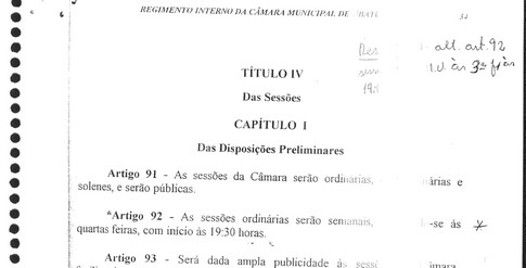 Fez aniversário no dia 20 deste corrente mês de agosto o arquivo ri_prov20070820.pdf, oferecido no site da Câmara Municipal de Ubatuba no box "Legislação" à guisa de Regimento Interno. Parece mais uma apostila escolar, toda rabiscada e com imprecisões que permitem interpretações ao sabor da ocasião. É algo para envergonhar ubatubenses, ubatubanos e caiçaras em geral, mas especialmente para envergonhar o presidente e os vereadores do Legislativo municipal, bem como o diretor administrativo, de quem é a responsabilidade de prover um documento decente.